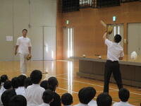 保健体育科「武道」の授業で、1・2年生が『少林寺拳法』を教わりました。