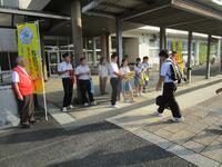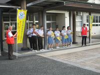 放課後の午後5時ごろ、2年生の女子生徒が自宅へ下校中に、学校そばの西光寺橋のところで、持ち手の棒が折れてしまった「横断用の旗」が風に飛ばされて道に落ちているのを見かねて、小雨の降る中、その旗を持って学校まで戻って来てくれました。
