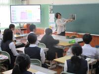 10月21日(火)は、玉名荒尾の一斉授業研究会が実施されました。三加和中学校でも1年1組で前田保憲教諭と髙上栄養教諭による家庭科(食育)授業が行われ、20名ほどの先生方が来校されました。生徒は、「バランスの良い献立」について意欲的に学んでいました。