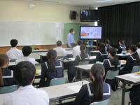 11月10日(月)に3年生で薬物乱用防止教室を実施しました。法務少年支援センターから鶴田義久様に来ていただき、薬の知識と危険性について学びました。