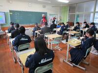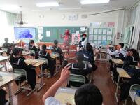 1月7日(水)の給食の時間に、まちづくり課から匡衆まつりのPRに来られました。国衆まつりは、2月8日(日)に和水町多目的広場(三加和支所裏)で行われます。