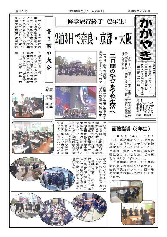 『一人の笑顔のために』 第2号 「三加和中学校職員紹介」