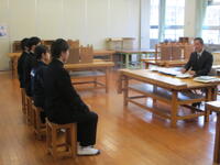 1月9日(金)、13日(火)に地域から4人の方に来ていただき、3年生の面接指導をしていただきました。いよいよ入試本番になります。皆緊張しながら臨んでいました。ご指導ありがとうございました。