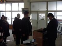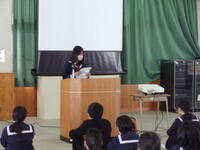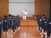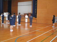 3月16日(月)に体育の武道の学習で、1,2年生が少林寺拳法を体験しました。熊本県少林寺拳法連盟から指導に来ていただきました。最後は、伊藤体育委員長がお礼の言葉を述べました。