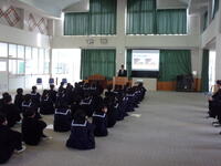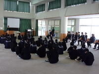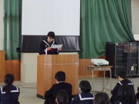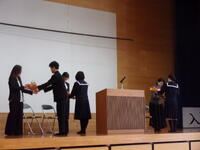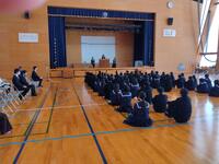 3月24日(火)に1,2年生の修了式を行いました。修了証を1年生代表椛島さん、2年生代表井上さんに渡し、意見発表を1年生飯川さん、2年生西村さん、生徒会上野さんが代表でしてくれました。