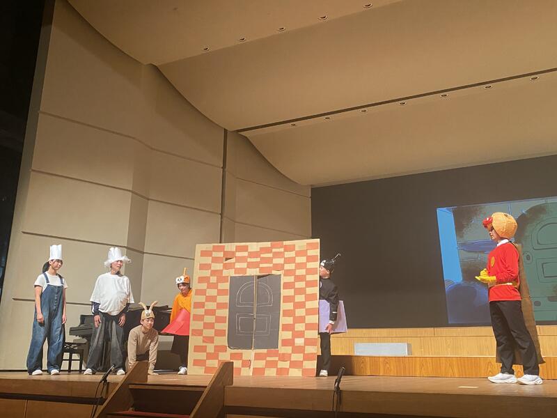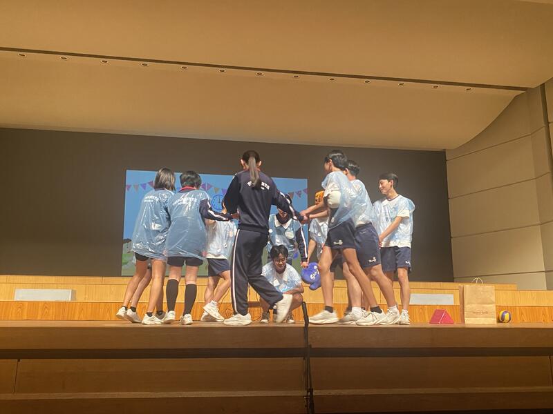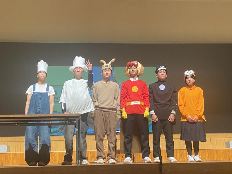 3年生の学年発表は「それいけ!水俣と3つのカケラ」、アンパンマンが「思いやり」「助け合い」「支え合い」3つのカケラを見つける旅に出て、福祉体験学習や環境学習での学びを振り返りました。1年生の時と今の写真を比較したスライドでは、保護者から「うるっときた」という声が聞こえてきました。最後は全員合唱「YELL」で幕を閉じました。「バイバイ」はさよならではなく、これから倍の力をつけますという意味ですね。