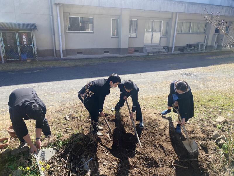 【埋め戻し】080218 投稿日時 : 02/18 学校管理者 昨日は、生徒3人とO先生で、防水シートが破れて水が抜けていた大成教室前の池の埋め戻し作業を行いました。計画では来年度に教室棟と特別教室等の間、再来年度に特別教室棟塩浜グラウンド側の壁面工事が行われる予定ですので、金魚とメダカたちは水槽で仮住まいです。 {{options.likeCount}} {{options.likeCount}}