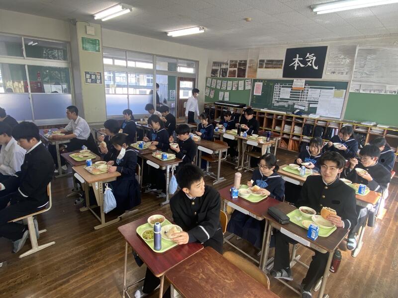 【日常風景】080217 投稿日時 : 02/17 学校管理者 後期(一般)選抜出願者数が発表されました。競争率に一喜一憂せず、夢実現に向けて頑張りましょう。 令和8年度(2026年度)熊本県公立高等学校入学者選抜における後期(一般)選抜出願者数.pdf 3年生の日常生活。給食も残り10回。前を向いて黙って食べる時代だったねと振り返る日も来るでしょう。給食が済んだら、今日は3年生の体育館使用日です。バドミントンとバスケットボールでストレス発散です。 {{options.likeCount}} {{options.likeCount}}