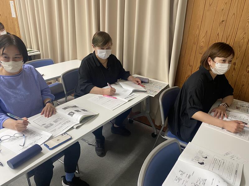 5月22日(水)、PTA役員の皆さんと一緒に、もやい館で開かれた熊日の「PTA新聞・広報紙づくり講習会」に参加してきました。取材からレイアウトまで、目を引く広報紙づくりのノウハウを学ぶことができました。来年の講座のテキストへの掲載をめざして、広報紙づくりを楽しみます。(新聞は正しい情報が大切ですが、この写真はどうもヤラセのようです。)