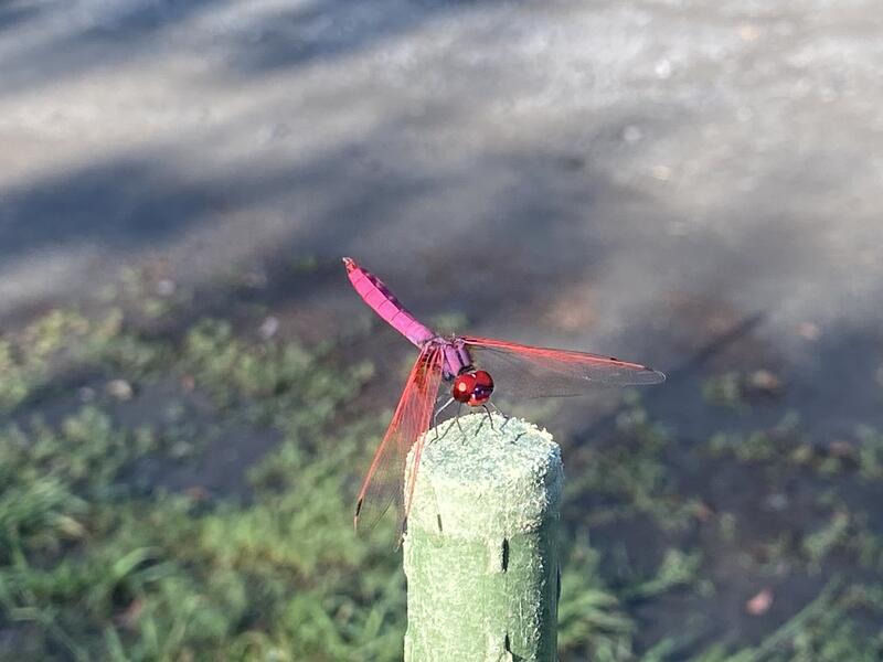 アジサイ花壇に止まっていました。アキアカネは俗に赤とんぼと呼ばれます。捕まえると罰が当たるとする言い伝えもあり、東北地方では雷に打たれるとして「かみなりとんぼ」と呼ぶそうです。