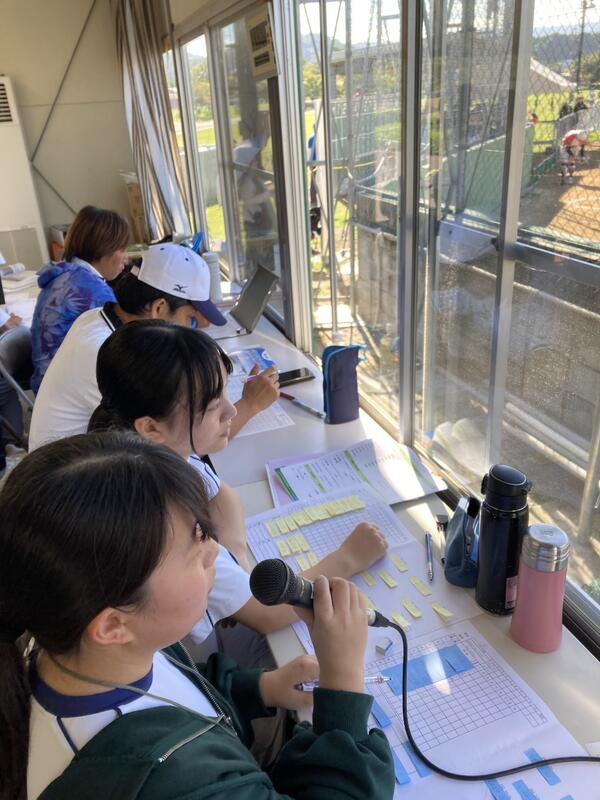 といった感想を聞くことができました。選手の皆さんからは「中学生のアナウンスは新鮮だった、感謝するとともに来年もお願いしたい。」という声が聞こえました。貴重な経験をさせていただいたソフトボール協会の皆様、ありがとうございました。