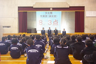 野球部、バドミントン部、美術展、工作展、人権標語に関する表彰をしました。