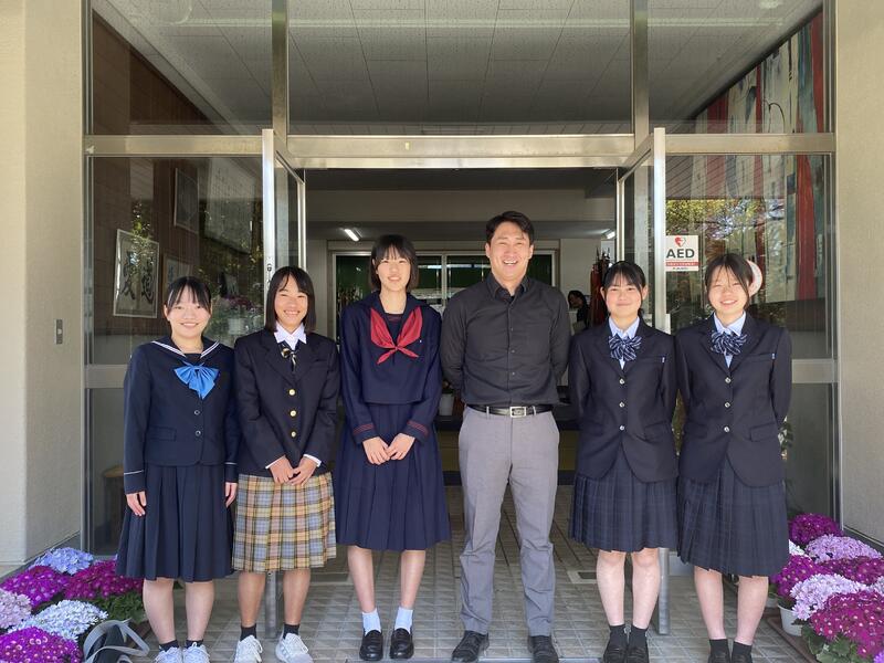 毎年恒例、卒業生の制服披露。二中の制服も混じっています。