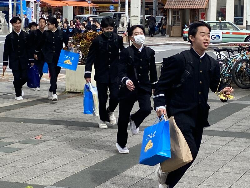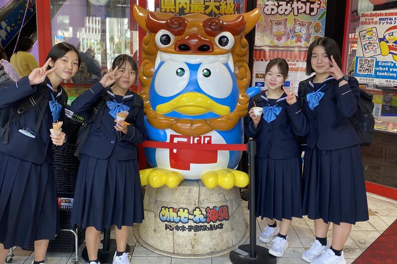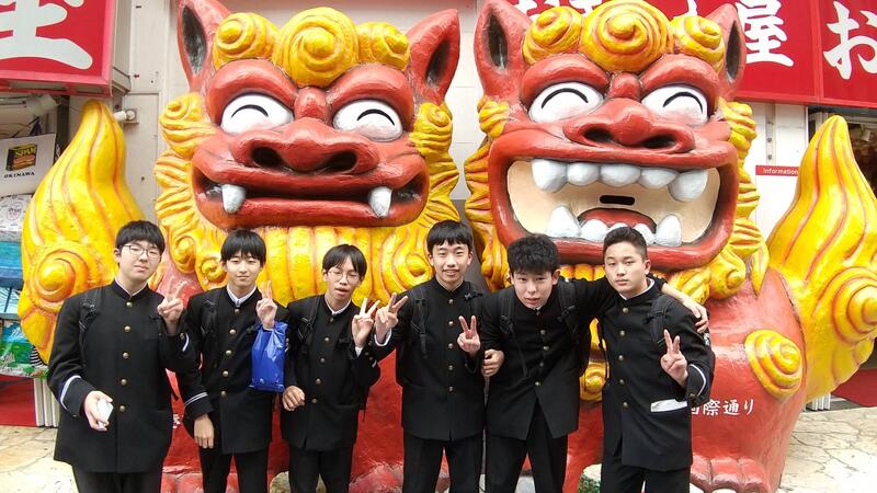 今から2時間の班別自主行動です。生徒会長から「校長先生、20mありがとうございました。」と言われました。熊本はどこに行ってもくまモン、沖縄はどこに行ってもシーサーですね。