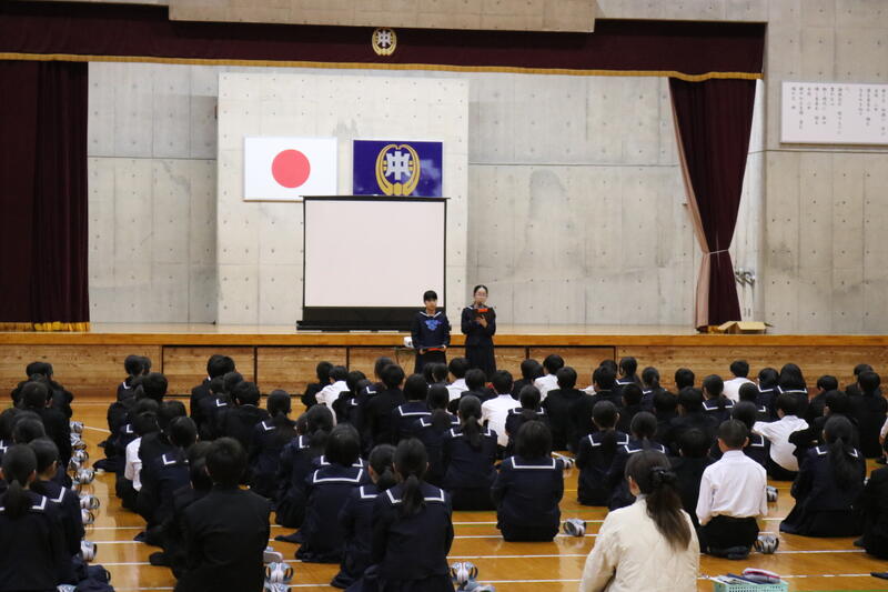 今日は、新入生歓迎行事を行いました。前半は部活動紹介、後半はレクリエーションを行い、交流を深める時間となりました。笑顔や歓声があふれ、緊張していた新入生の表情も次第に和らぎ、学校生活への期待が高まっている様子がうかがえました。これからの学校生活の中で、自分に合った活動を見つけ、充実した日々を送ってくれることを願っています。また、今年度の生徒会テーマの発表もありました。今年度のテーマは『二中維新~「誰か」ではなく「自分」から変わる~』です。さらにパワーアップした二中にしていきましょう。