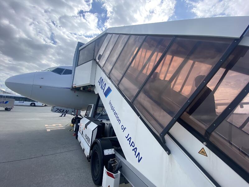 そろそろ飛びます。着陸まではスマホもまたフライトモードです。隣の席のT主任は、またもや緊張モードです。