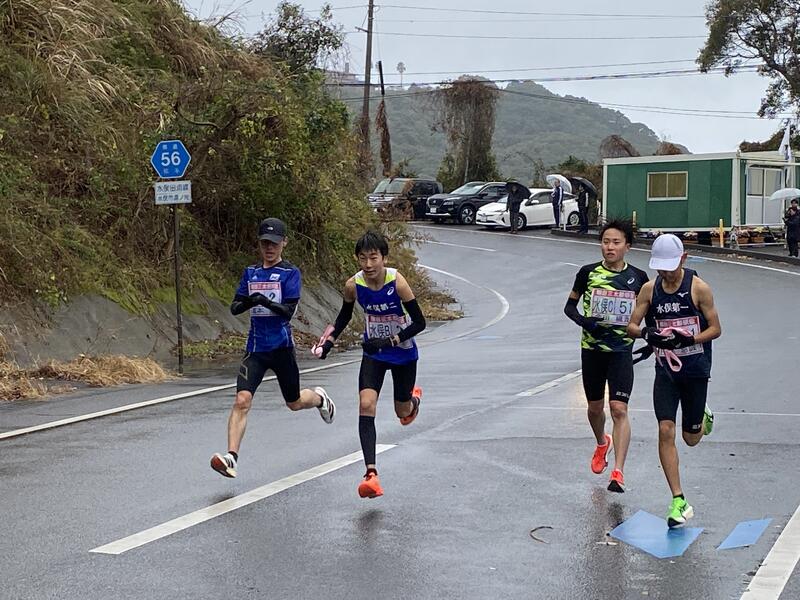 熊本県内で最も歴史のある駅伝大会「熊日三太郎駅伝競走大会」が11日に開催され、二中生も7名が選手・サポート役として参加しました。冷たい雨の降る水俣市役所をスタート、芦北町役場田浦支所をゴールとする10区間40.2kmでタスキをつなぎました。途中は小雪の中の大会でしたが、水俣Aチームが10連覇を果たしました。2区Mくんの活躍は熊日新聞に写真入りで紹介されていました。また、同じ日の午後に、都道府県対対抗女子駅伝競走大会の8区を走ったTさんからアンカーへタスキをつなぐ場面も写真で大きく紹介されていました。また、1面の最初に二中生2人の写真が並んでいます。