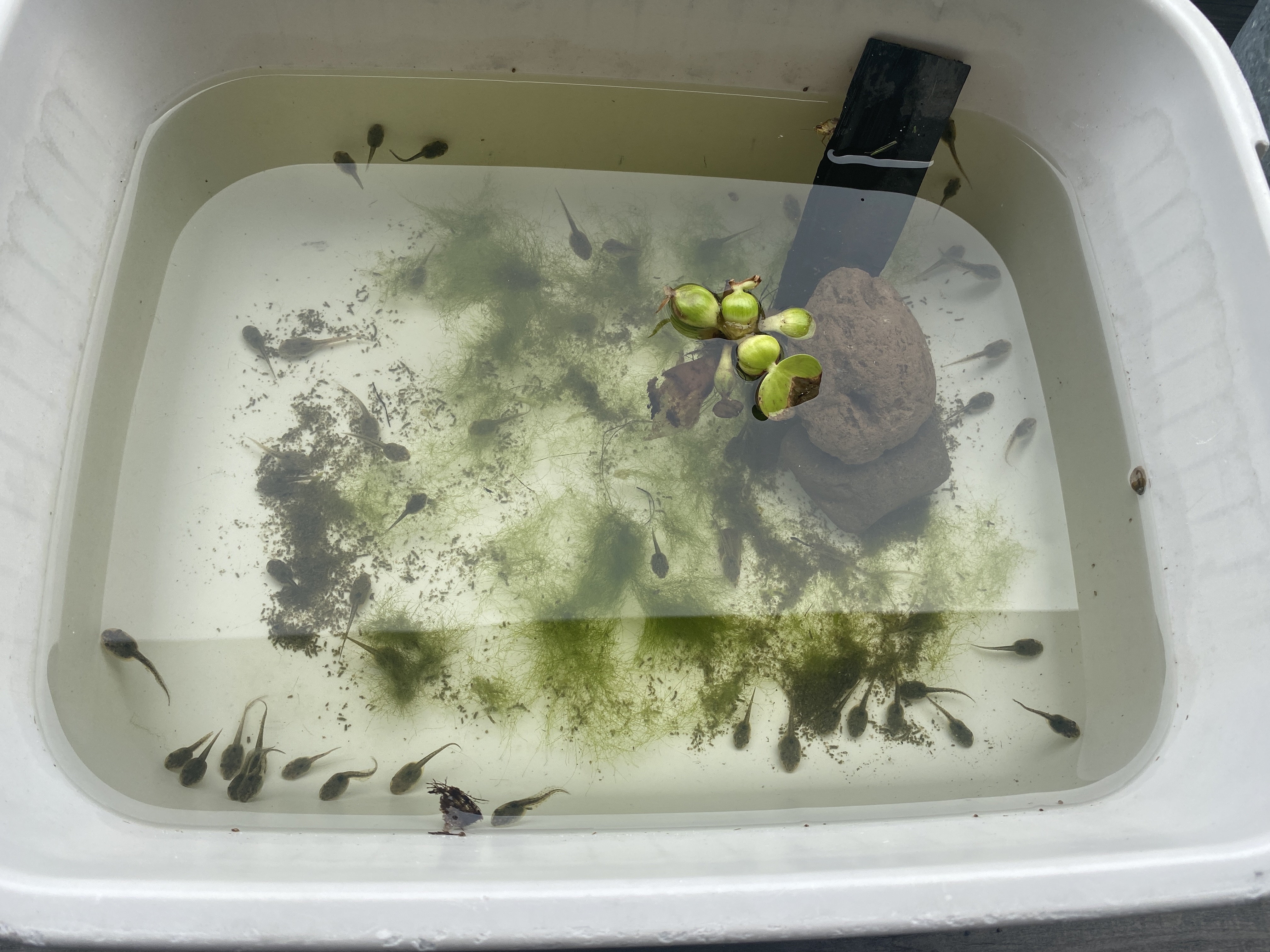 水泳の授業が近づいてきました。今日はプール掃除です。オタマジャクシを手づかみでたくさん捕まえました。とある教室で飼うことにしたそうです。写真・動画データはオタマジャクシが苦手な人は開かないでください。