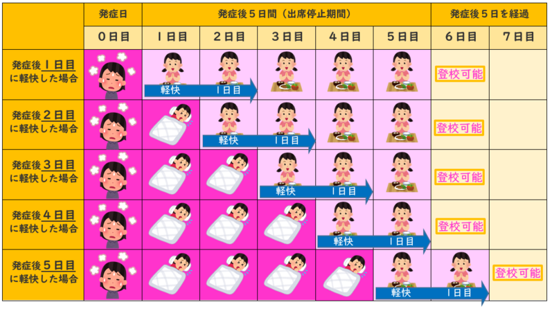 ※出席停止解除後10日を経過するまではマスクの着用が推奨されている