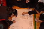 1枚1枚、避難者の情報を先生が読み上げ、図上に配置していきます。