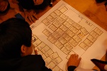 カードに書かれた避難者を、体育館のどの場所に配置するか・・・。