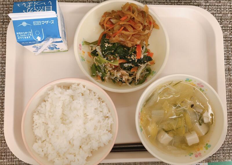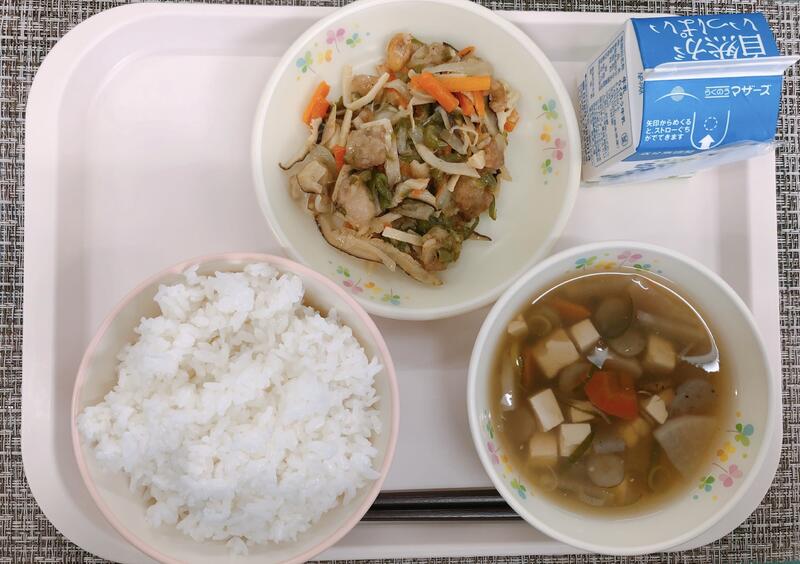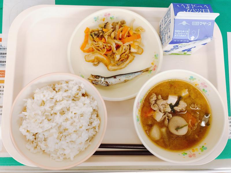 6月4日の給食は「麦ご飯、牛乳、豚汁、いわしの丸干し、切り干し大根のうま煮」です。
