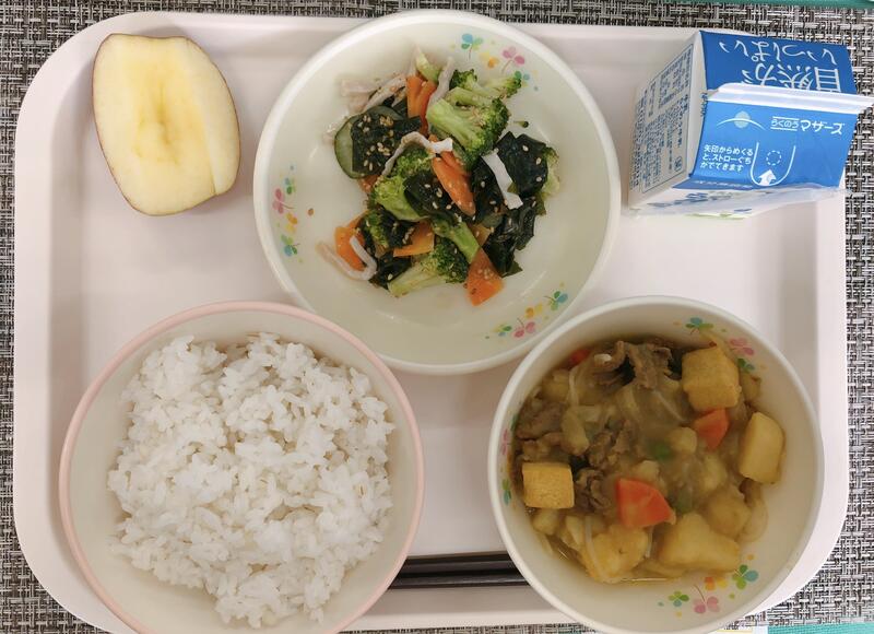 ブロッコリーやりんごなど旬の食材、みんなが大好きなカレー味を取り入れ、工夫された素晴らしい献立だと思いました。