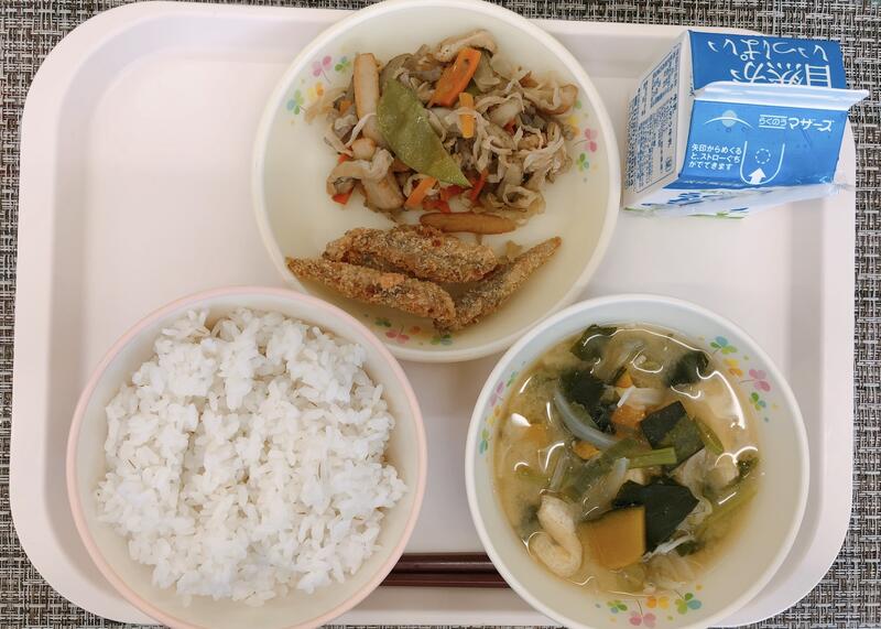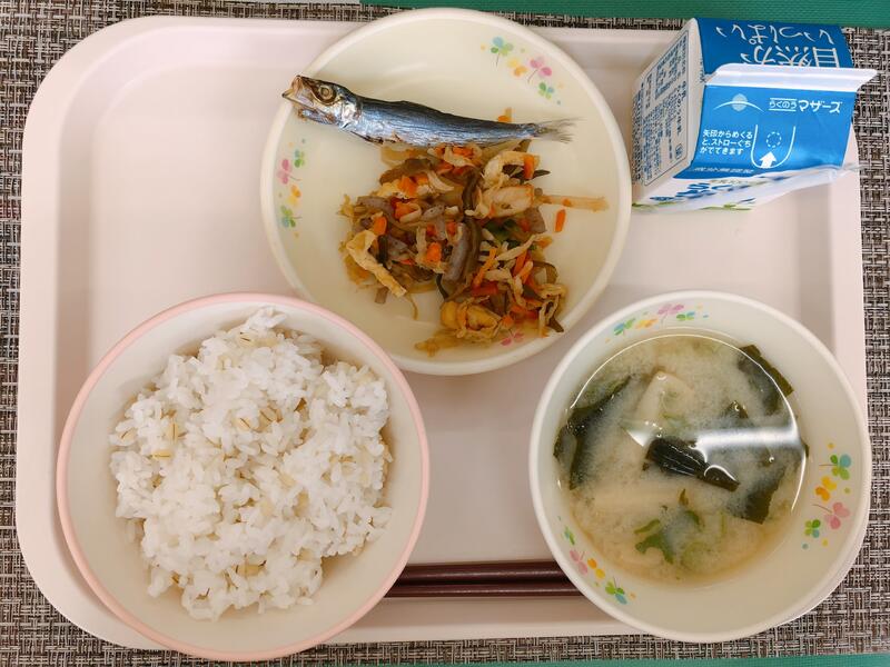 6月9日の給食は「麦ご飯、牛乳、みそ汁、いわしの丸干し、切り干し大根のうま煮」でした。