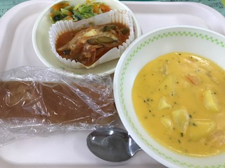 今日は県産の人参ペーストを使ったスープでした。