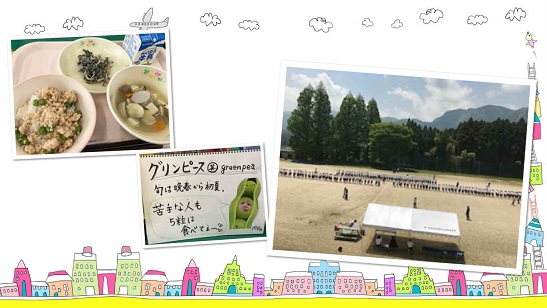 粉ものと豆、生徒たちの健康のバランスをしっかりと考えてあるメニューでした。豆といりこをかみ過ぎて顎が痛くなりました。(校長先生)