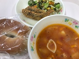 洋風、和風料理のメニューでした。特にミネストローネといわしのカリカリフライが絶妙にマッチしていました。とても美味しかったです。(校長先生)