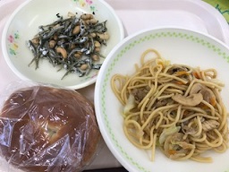 献立「パインパン 牛乳 やきそば いりこと大豆の香り和え」