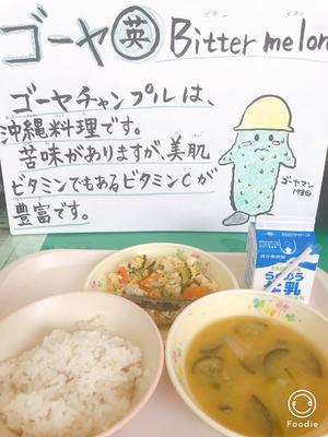 今日は沖縄料理、ゴーヤチャンプルでした。