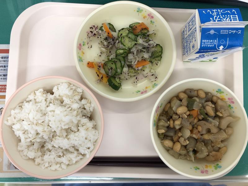 月曜日の献立です。 投稿日時 : 2020/09/08 学校サイト管理者 9月8日の給食は「麦ご飯、大豆の五目煮、ゆかりあえ」でした。 台風の影響で7日が休校になったため、8日に実施予定だった献立がなくなり、今日は7日の献立の提供となりました。 8日に予定していたハヤシライスが食べたかったという声が多かったです、、、 しかし、とても美味しい給食でした! 豆類は私達に不足しがちな食物繊維、カルシウム、カリウムが豊富に含まれているので、苦手な人も食べて欲しいなと思います。 Tweet {{options.likeCount}} {{options.likeCount}}