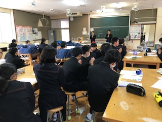 たんぱく質は英語で・・・。 投稿日時 : 2017/04/21 投稿者6 今日はたんぱく質の話をしました。 たんぱく質が英語でプロテインということを初めて知った生徒がいました。 プロテインは別の食べ物(飲み物??)と思っていたようです。 今日の献立「玄米パン 牛乳 ポークビーンズ いわしのカリカリフライ コールスロー」でした。ちょっと量が多かったようです・・・。 ☆検食簿より☆ 玄米パンは久しぶりですね。他よりMgやFeが多く含まれているとは知りませんでした。ポークビーンズもおいしかったです。(校長先生)