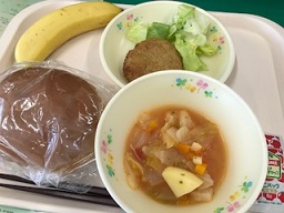 献立「セルフハンバーガー 牛乳 ミネストローネ バナナ」
