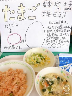 献立「チキンライス 牛乳 たまごスープ コーンサラダ」