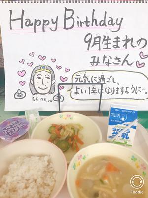 今日は9月生まれのみなさんをお祝いする給食でした。