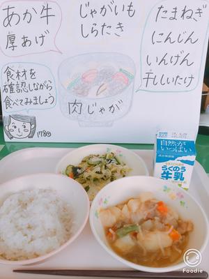 献立「麦ごはん 牛乳 肉じゃが 海藻サラダ」