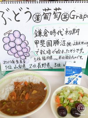 献立「ハヤシライス 牛乳 まめまめサラダ ぶどう」