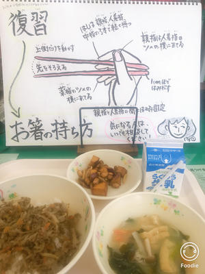 お箸の持ち方を復習しました。
