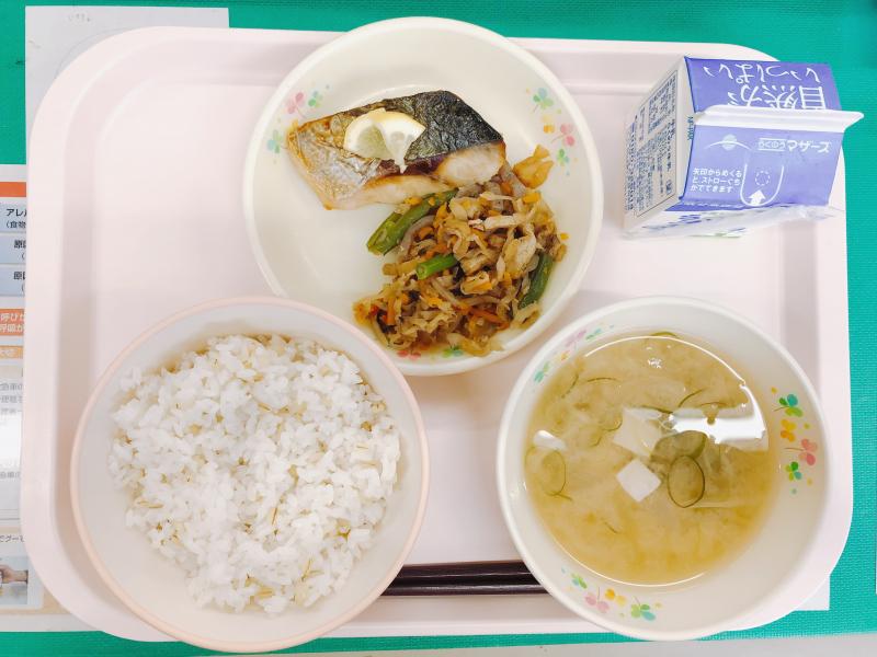 5月21日の給食は「麦ご飯、味そ汁、さばの塩焼き、切り干し大根のうま煮」でした。