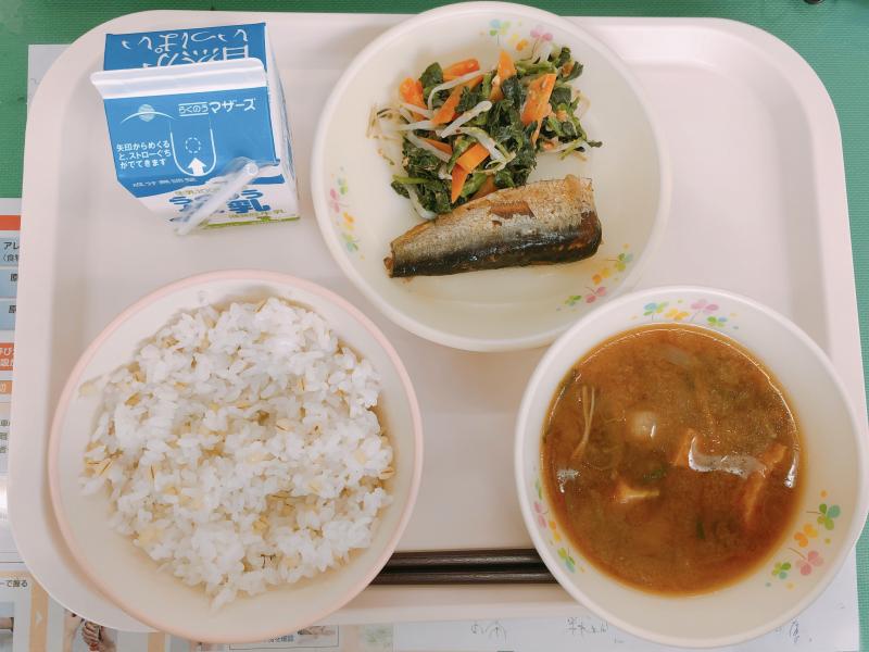 5月26日の給食は「麦ご飯、みそ汁、いわしの生姜煮、ピーナツ和え」でした。