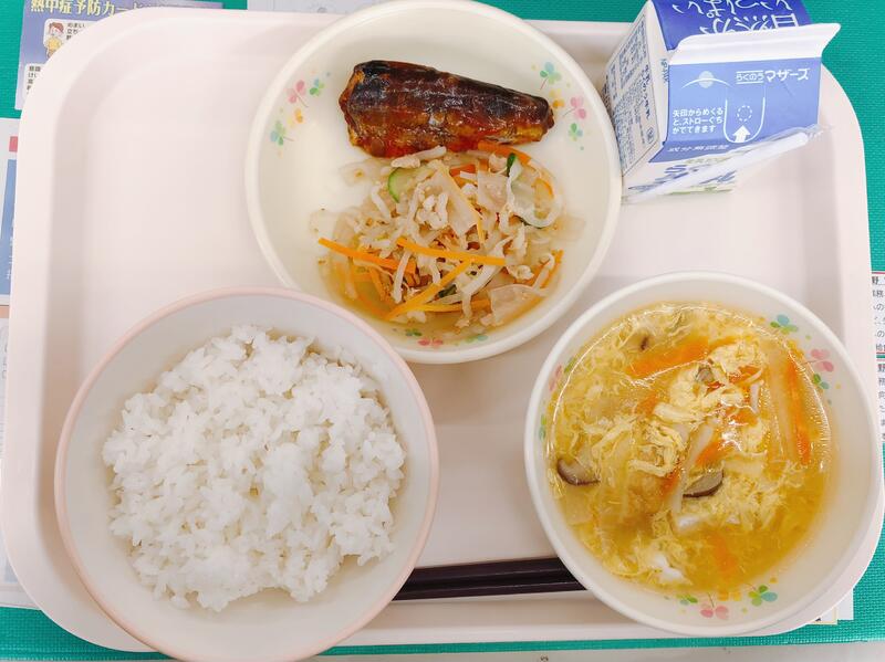 11月18日の給食は「ごはん、牛乳、厚揚げときのこの酸辣湯、いわしのトマト煮、こんにゃくサラダ」でした。