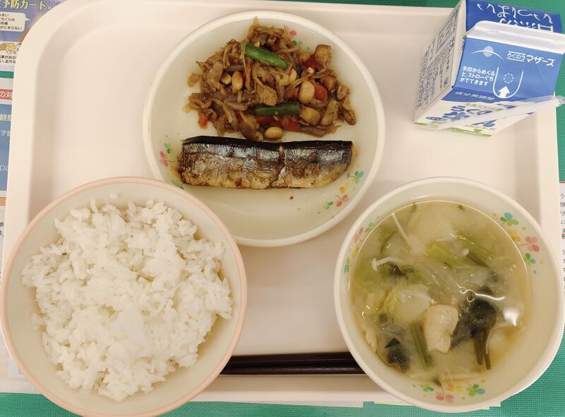 11月25日の給食は「ごはん、牛乳、みそ汁、さんまの塩焼き、切り干し大根のうま煮」でした。
