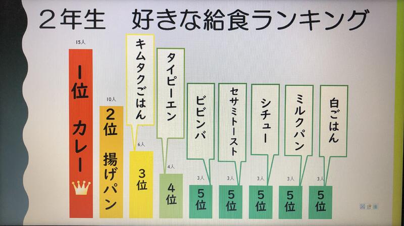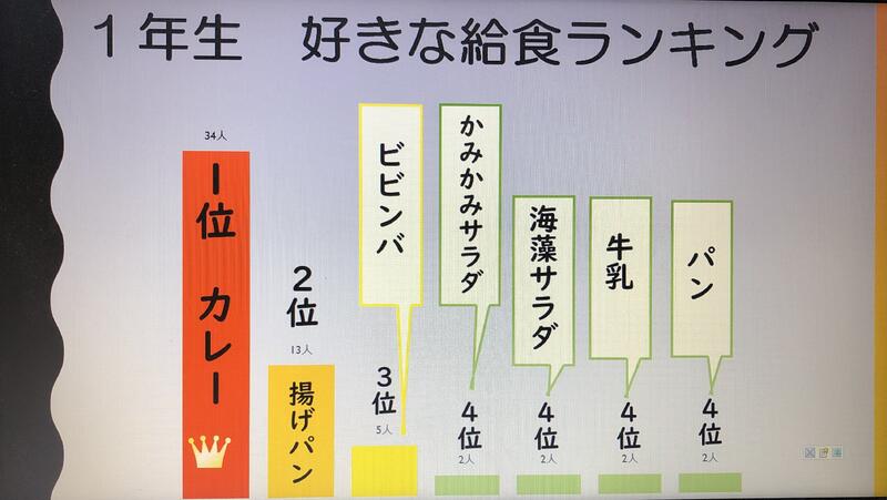 1年生の好きな給食ランキングの結果は以下の通りでした。