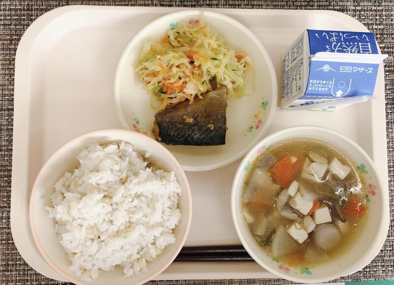 1月26日の給食は「麦ごはん、牛乳、のっぺい汁、さばのゆずみそ煮、たくあんの香りあえ」でした。