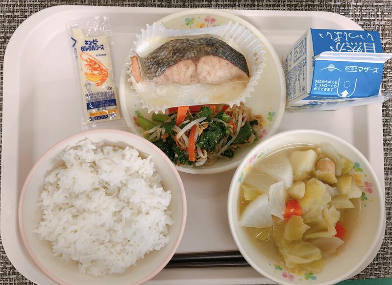1月27日の給食は「ごはん、牛乳、ポトフ、鮭のタルタルソースがけ、ピーナツあえ」でした。