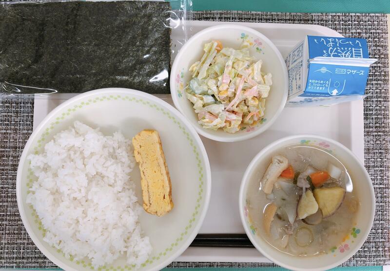 2月3日の給食は「セルフ手巻き寿司、牛乳、豚汁、ツナサラダ」でした。