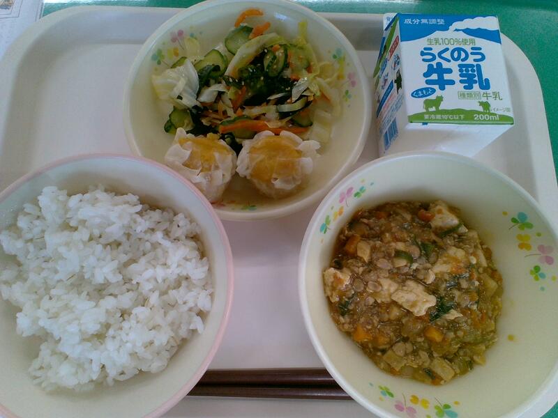 麦ごはん 麻婆豆腐 にんじんシューマイ 酢の物 牛乳